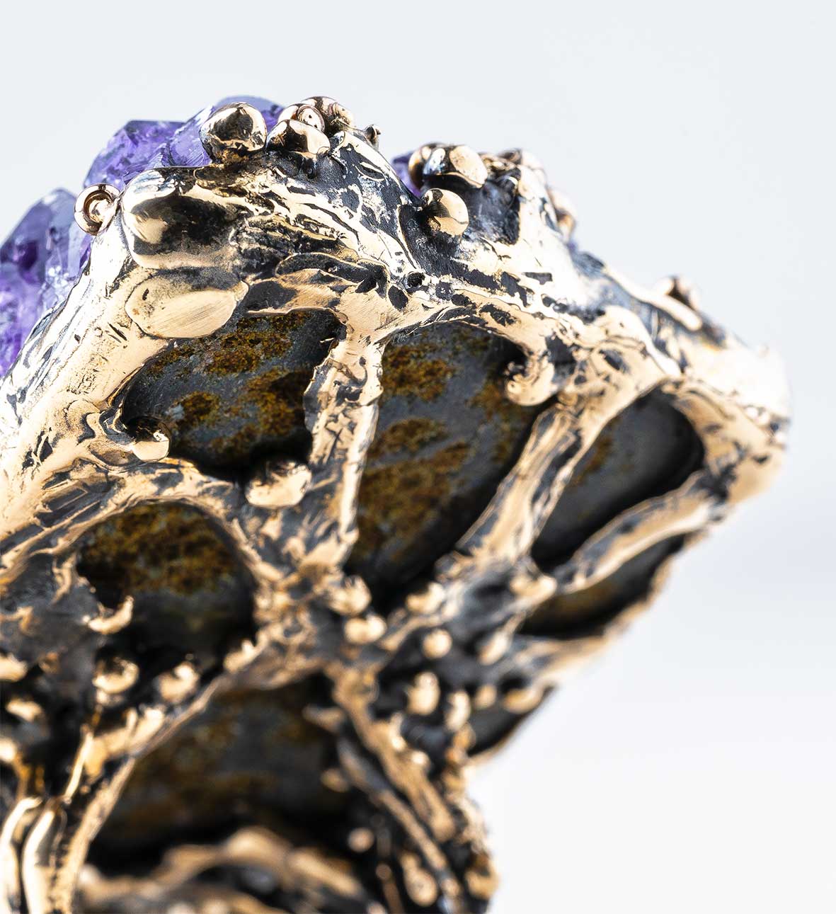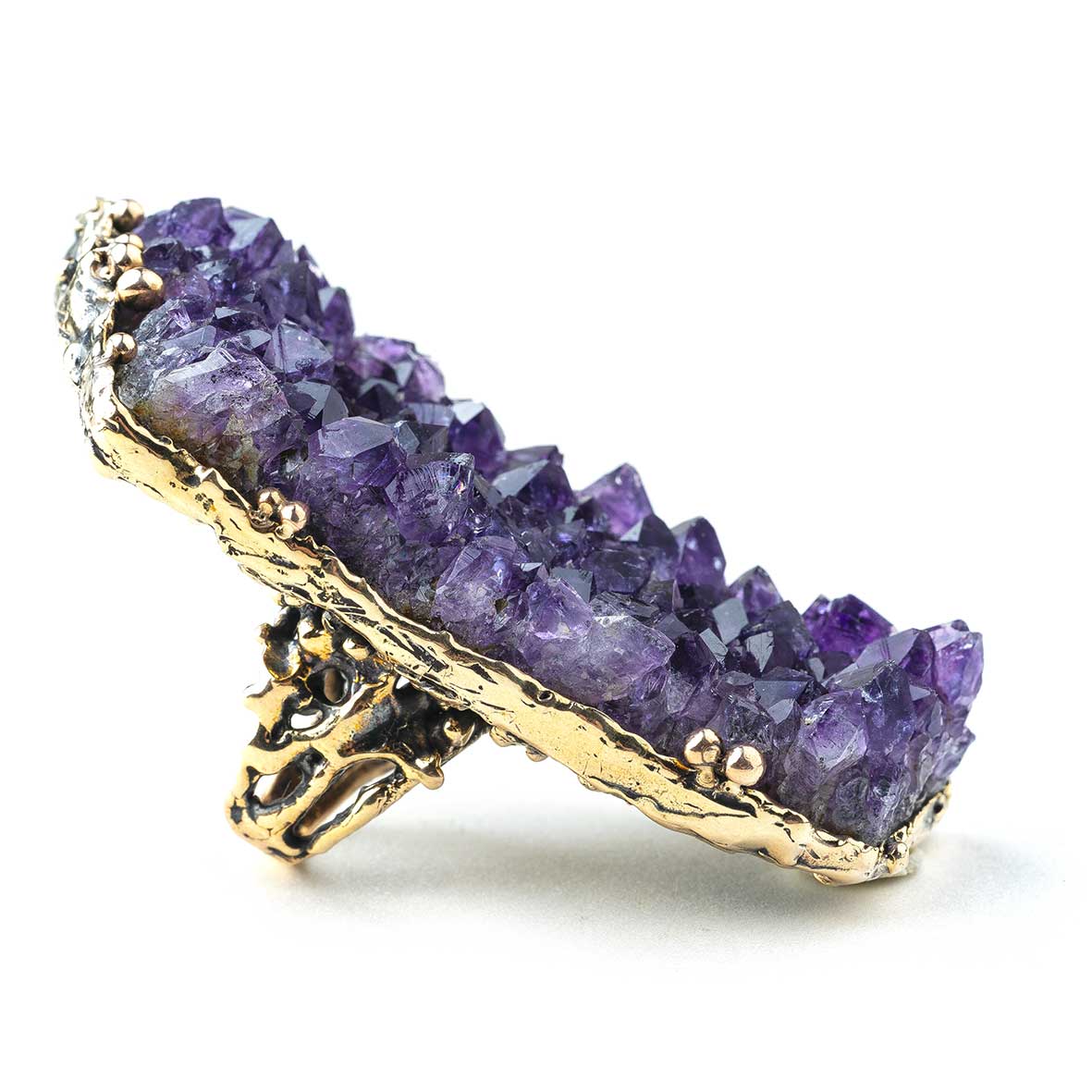 MATERIALS AND FINISHING: nickel-free bronze and Amethyst Druze.