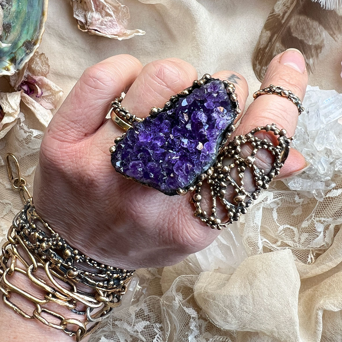 MATERIALS AND FINISHING: nickel-free bronze and genuine Amethyst Druze from Uruguay.