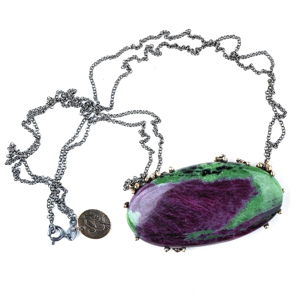 Roby in Zoisite necklace is an exceptional help in melting distrust and melancholy, gaining a new sense of perspective that raises more courage, joy, and enthusiasm.