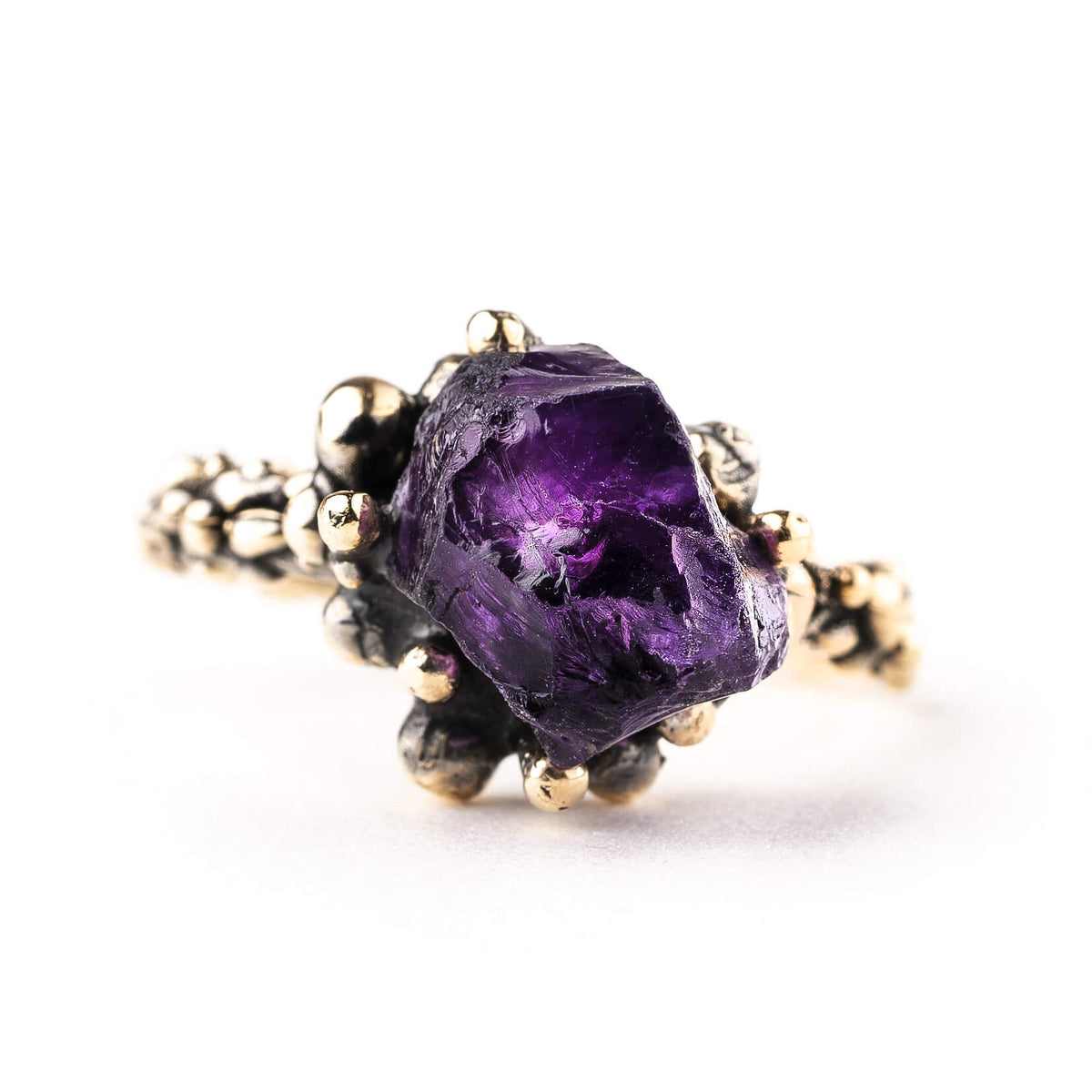 This Amethyst Band Ring helps to melt emotional tension, anxiety, and lack of control, assisting in bringing light into dark thoughts and re-establishing the authority of your own inner guidance.