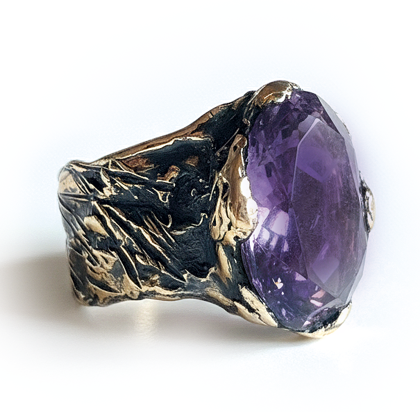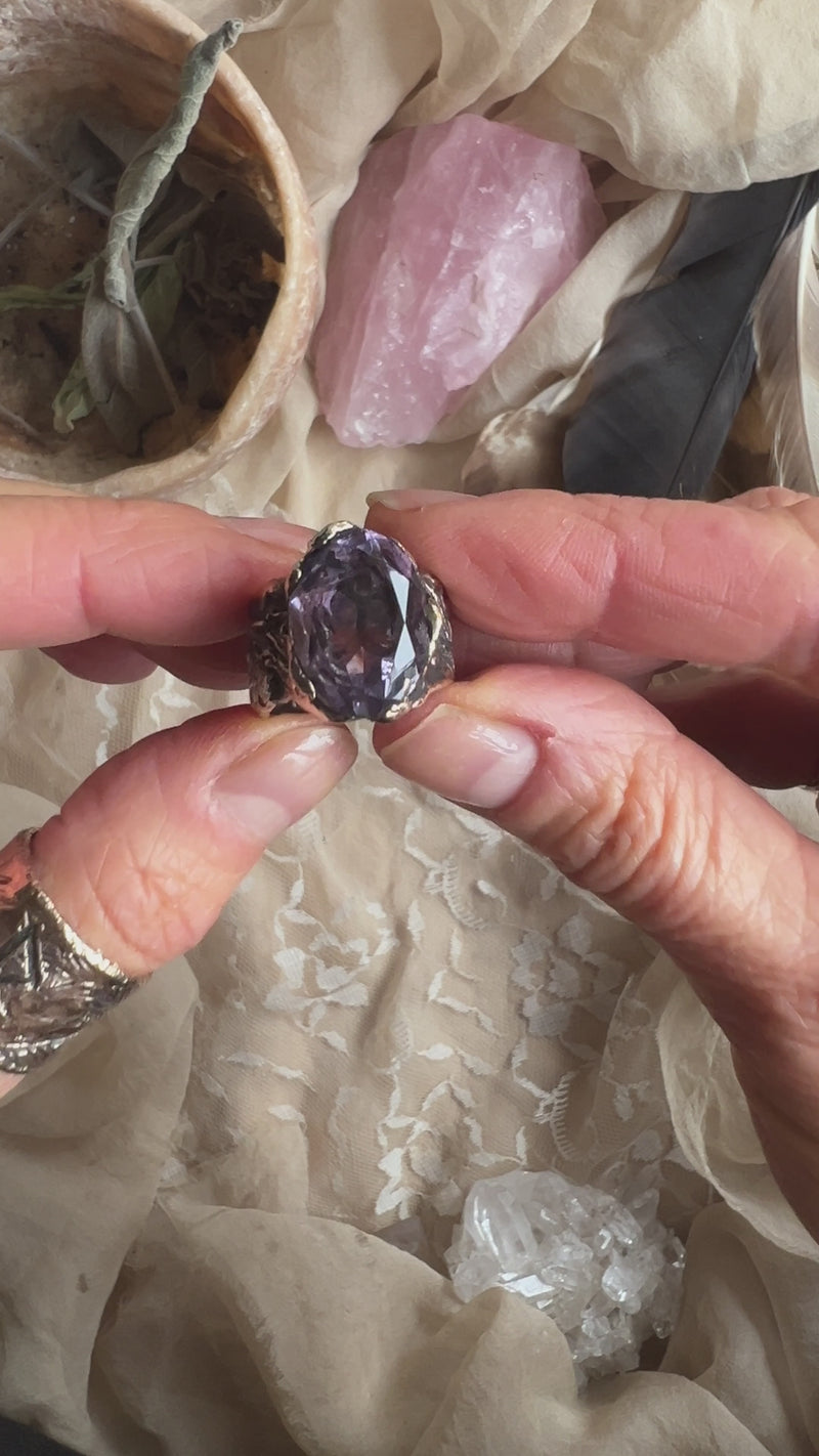 It's entirely handmade and unreplicable, the metal flows organically around the stone, raw and unpredictable, celebrating the beauty of imperfection. Each curve and contour is guided by the energy of the amethyst, making this ring a singular companion, a quiet, spiritual ally to support, protect, and accompany you on your journey.