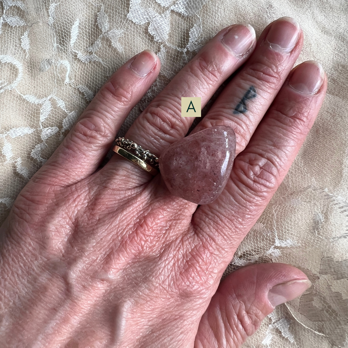 Raspberry Quartz Ring guides you through your awakening journey, facilitating every transformational process by actively leading you to a place of peace where you can clearly see everything around and within you.