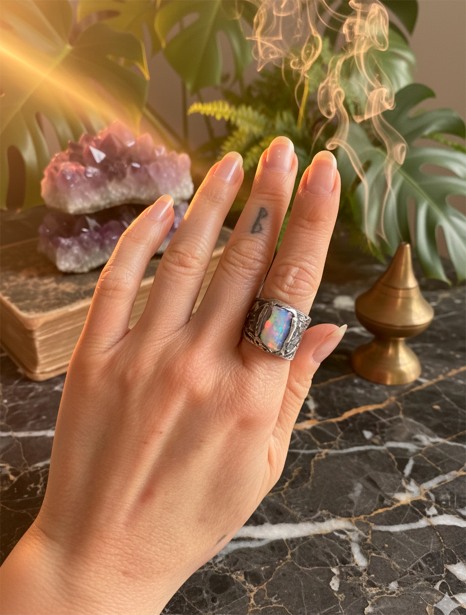 Entirely handmade and unreplicable, this ring is shaped around the crystal itself, honoring its unique structure and frequency. The raw opal guides the creation, making every piece truly one of a kind, not just worn, but experienced.