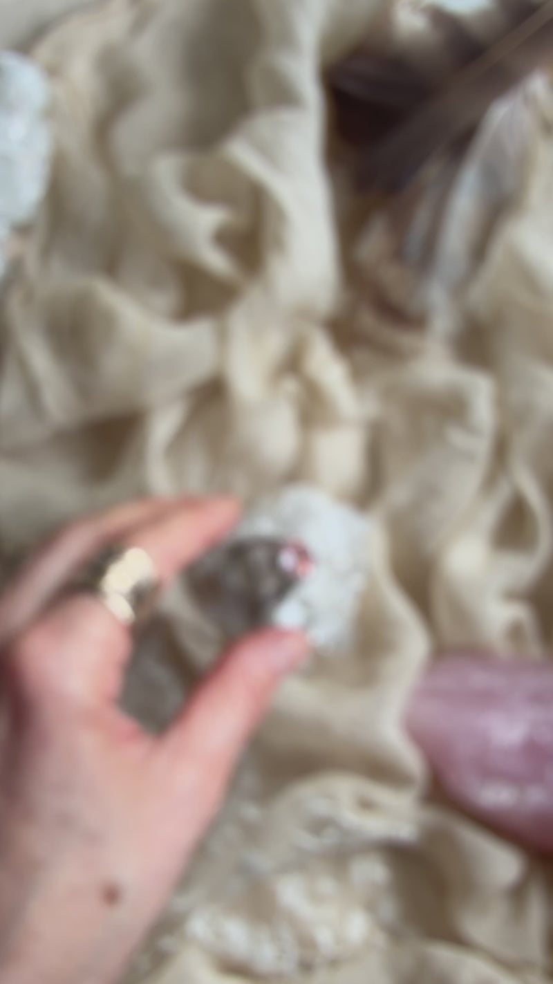 At the heart of the piece is a Strawberry Quartz, a rare variety of quartz infused with hematite inclusions that look like tiny, frozen embers or delicate seeds. Known as the stone of "Inner Love" and "Purpose," its energy is grounding yet profoundly uplifting.