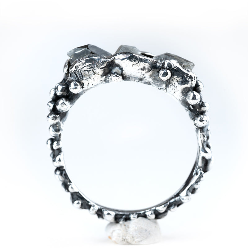 Three Stones Herkimer Diamond Band Ring - One of a Kind -