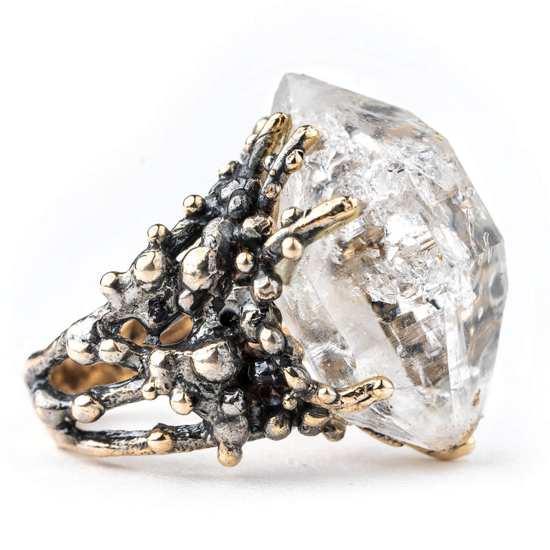 Solitaire Herkimer Diamond Band Ring - Made On Order -
