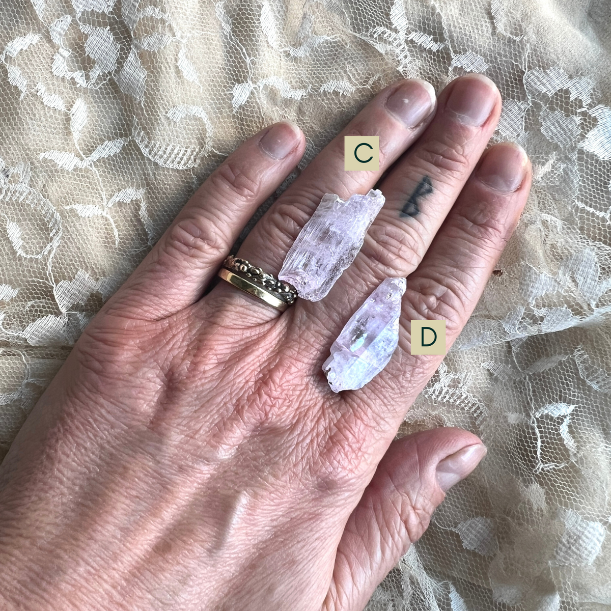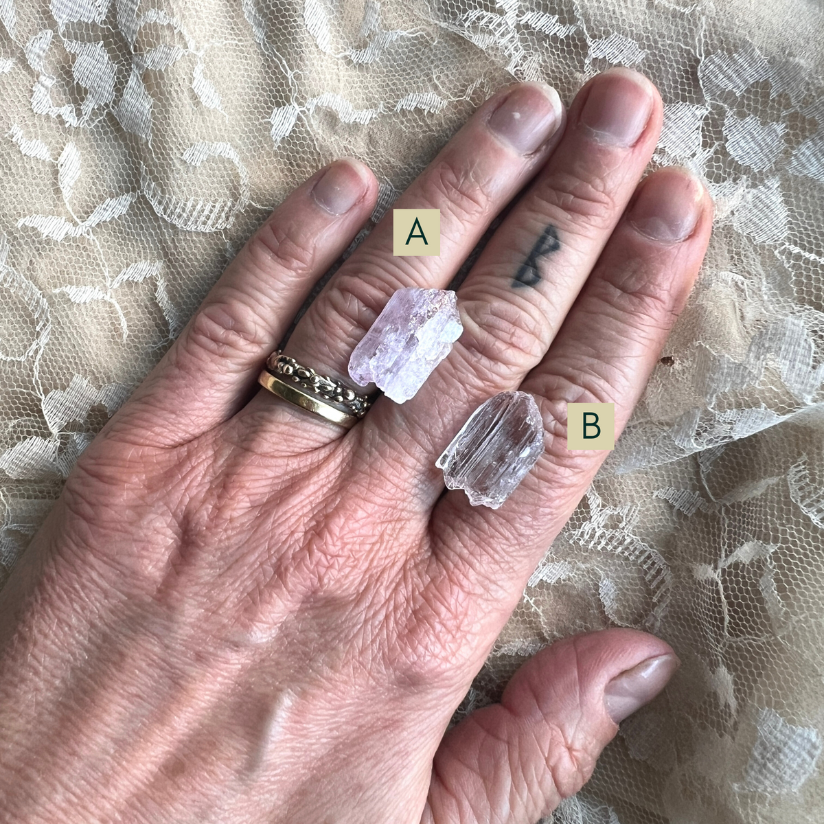 NAME: Every Giardinoblu piece of jewelry is a living creature. This pink kunzite Crystal gemstone ring is Aylen, meaning "limpid" in Mapuche.