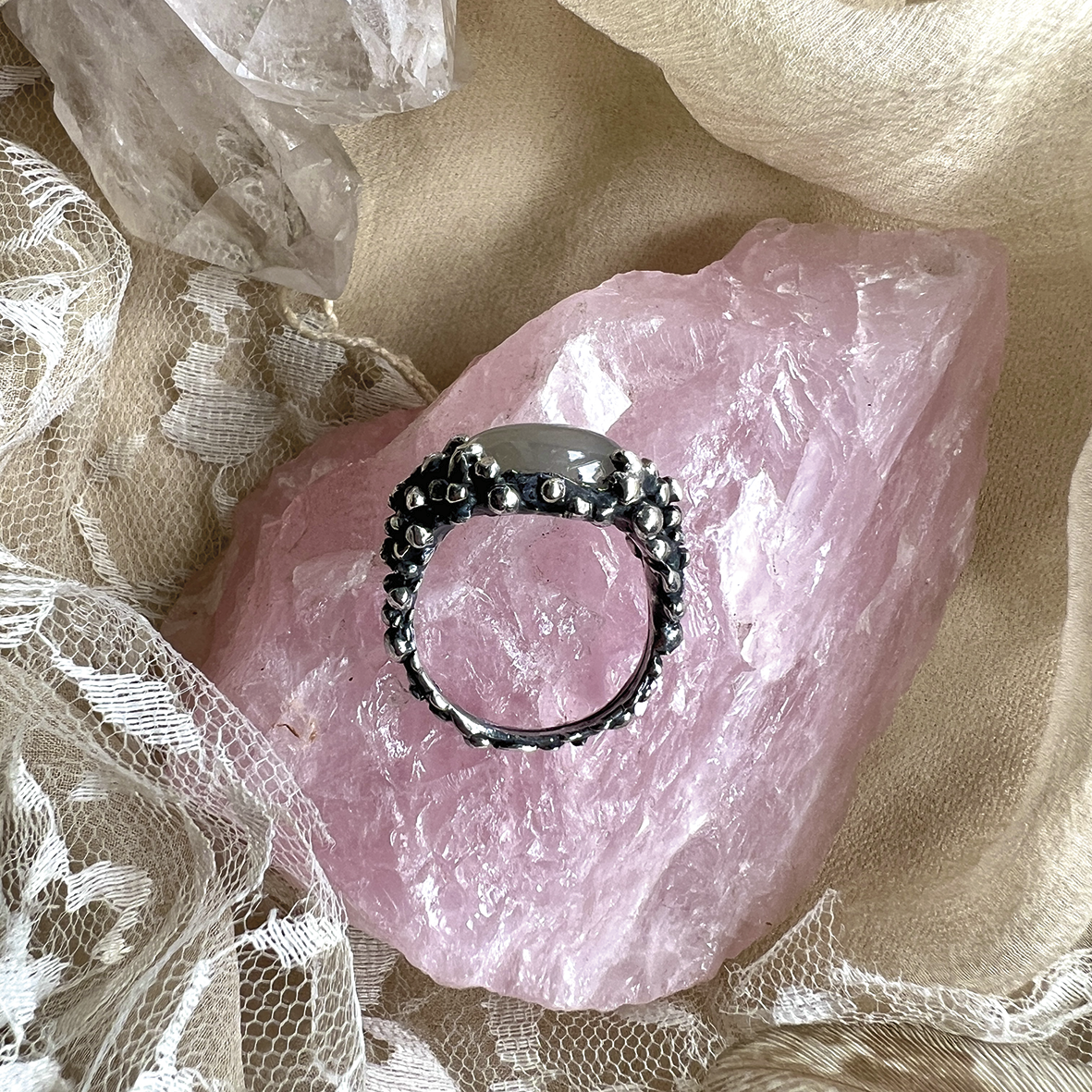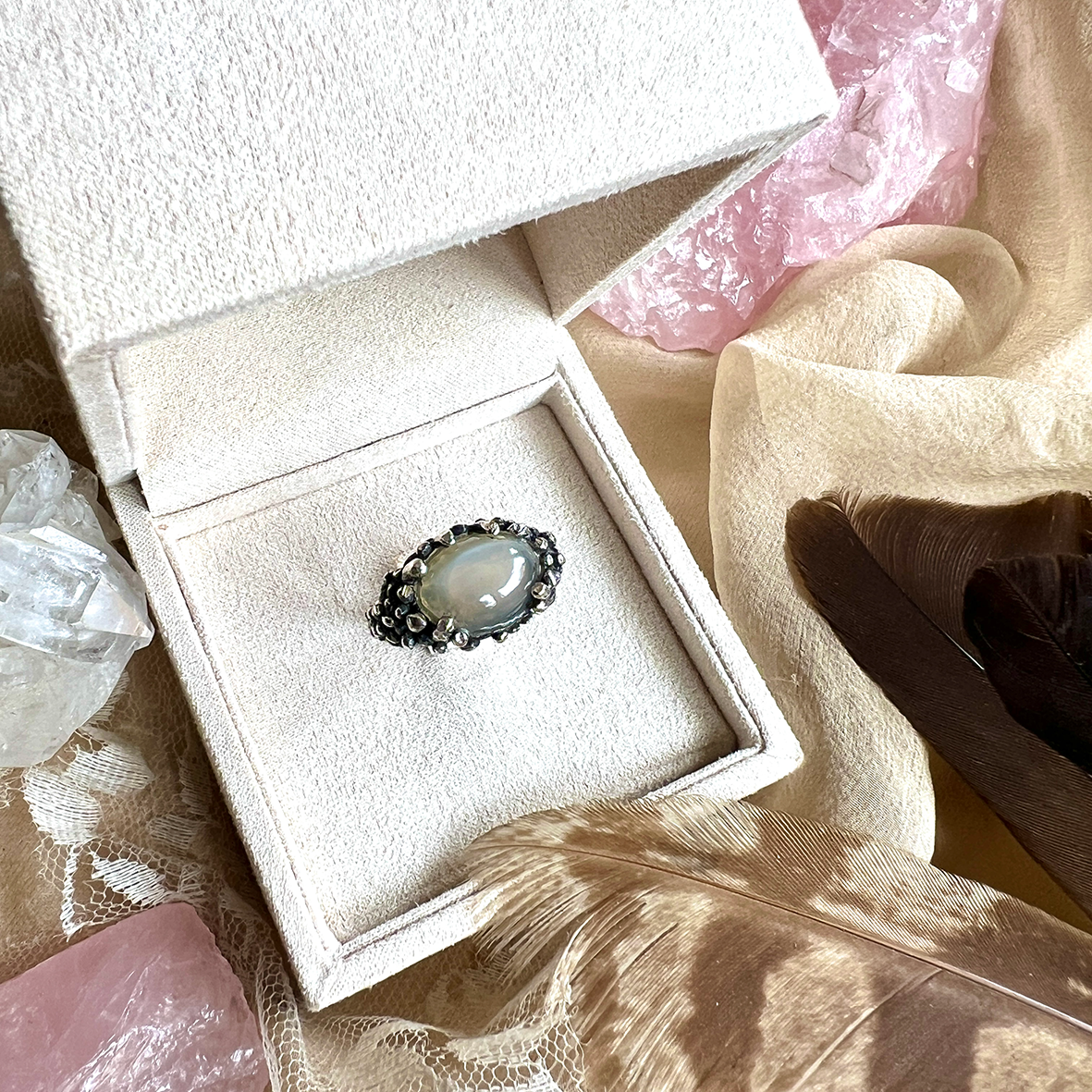 This handmade ring honors that lineage. Each piece is shaped individually and left deliberately unique, allowing the stone to retain its own visual identity and quiet narrative.