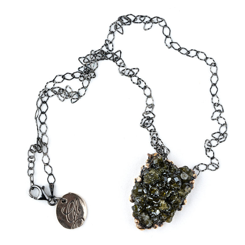Vesuvianite Druzy Necklace - Unique Piece -