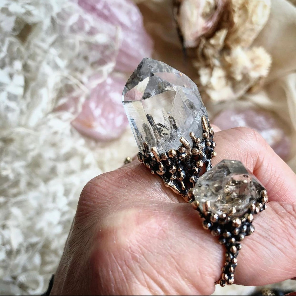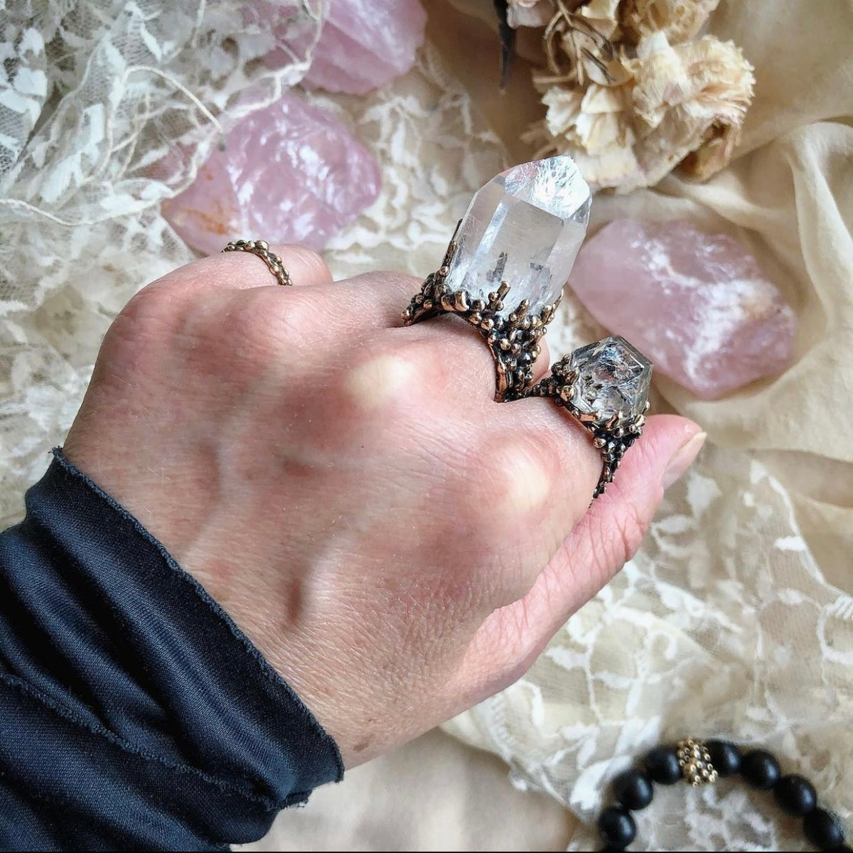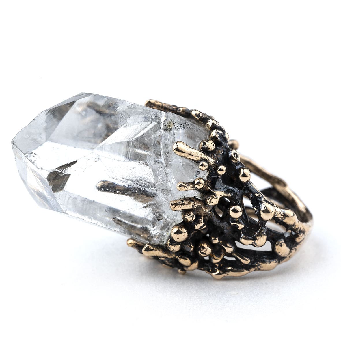 MATERIALS: bronze and Clear Quartz (natural raw tip). The crystal is natural (not a resin). You're invited to be careful when you wear this ring to prevent damage to the crystal.