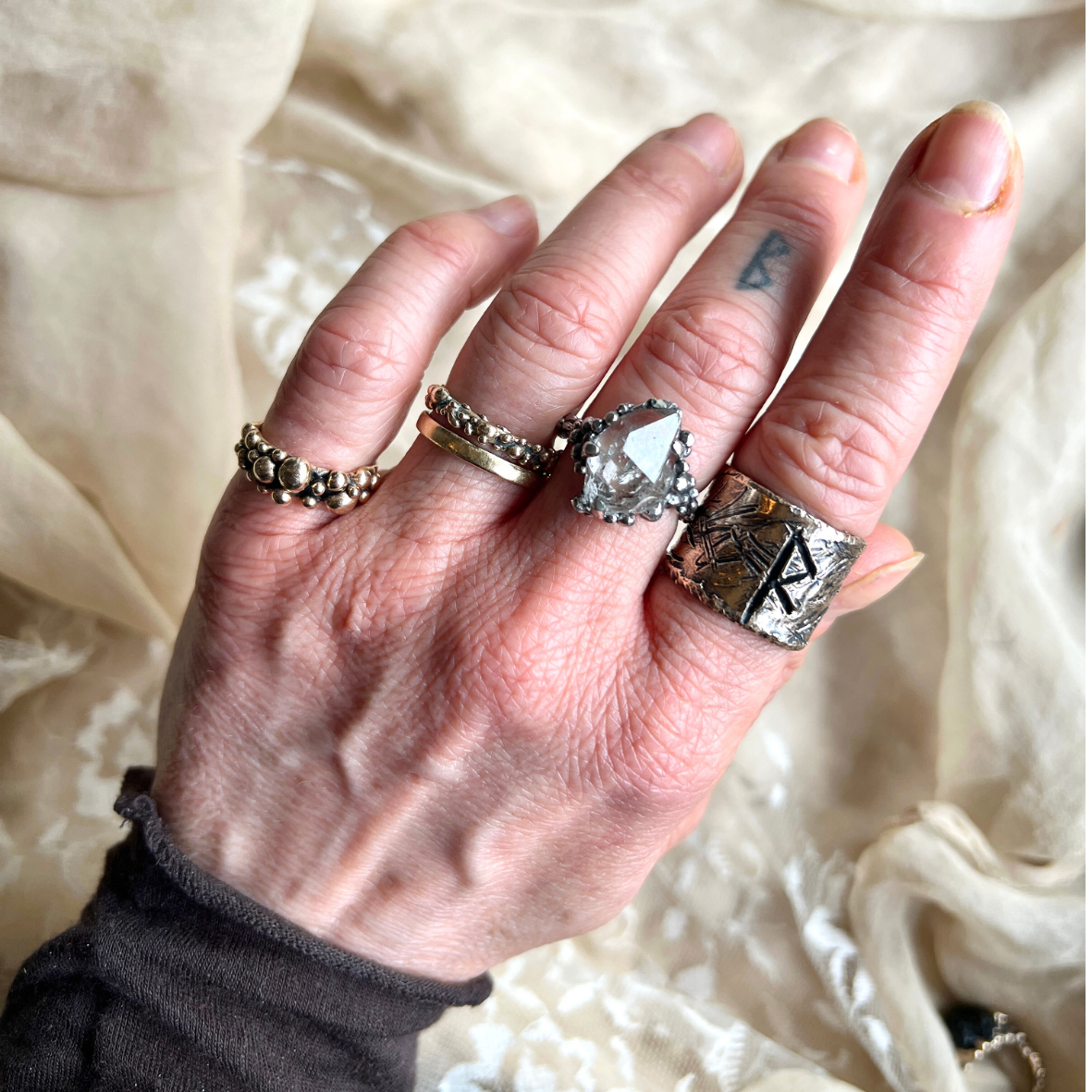 Herkimer Diamond ring teaches you how to listen to your intuition and assists you in bringing more clarity to your own soul and life.