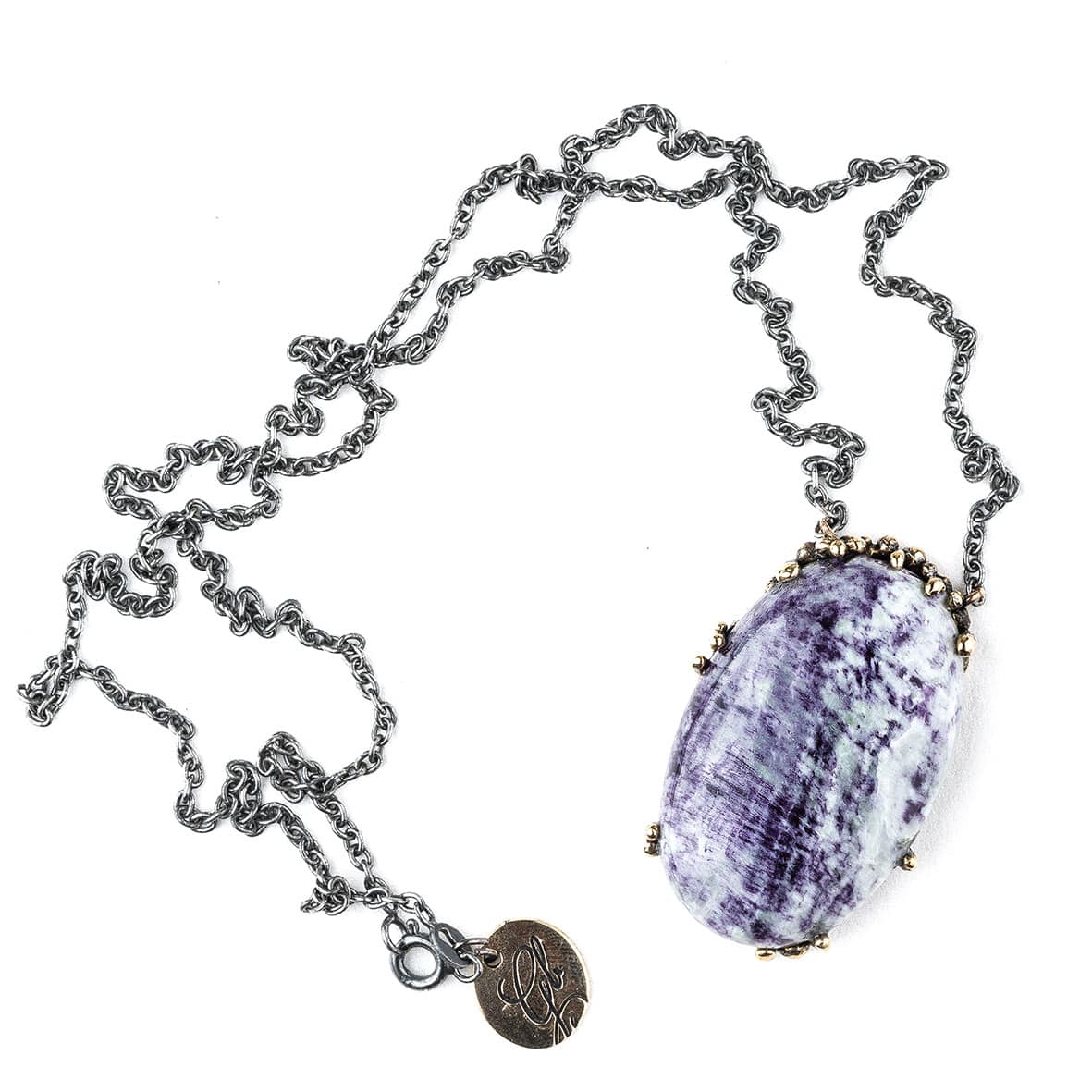MATERIALS AND FINISHING: nickel-free burnished bronze, oxidized sterling silver, Kammererite.